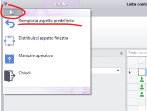 Nel caso in cui una maschera abbia comportamenti anomali o si siano apportate modifiche al suo aspetto, è possibile ritornare alle impostazioni predefinite utilizzando l’apposito pulsante in alto a sinistra nella testata della maschera stessa.